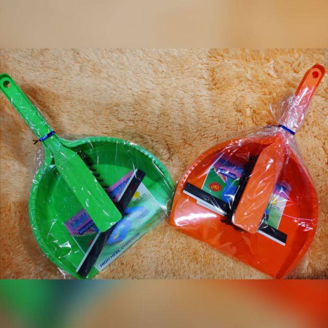 Penyapu, bakul, pemadam, dan penyodok.